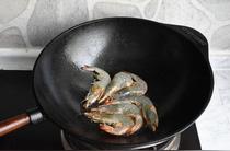 鍋中加入適量的油燒熱,然后放入處理好的蝦。蝦一定要用紙巾或毛巾吸凈水份,否則入油鍋會(huì)濺油。