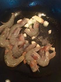 將蝦解凍去殼后用平底鍋煎一下盛出備用
