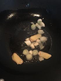 加少許油放入蔥姜煸出香味,加入少許料酒。
