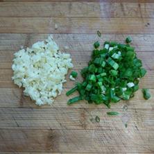 大蒜拍末,香蔥切蔥花。