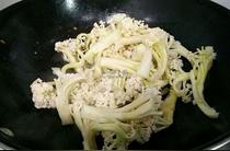 熱鍋熱油炒香蒜蓉,加入菜花大火翻炒一下。
