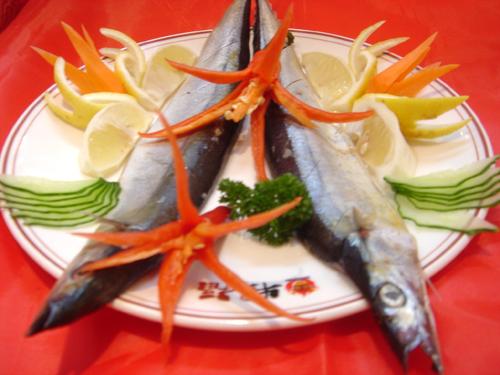 1. 刀魚洗凈,切成8厘米長段,兩面剞花刀,加料酒及調(diào)料腌制半小時。