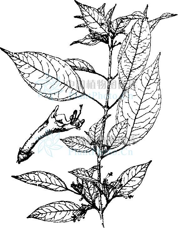 直立灌木;葉對生,全緣,聚傘花序腋生,有少而稀疏的花,核果卵形,僅1種,分布于我國南部及越南北部。