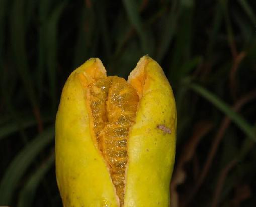 黃蠟果(學(xué)名:Stauntonia brachyanthera)為木通科野木瓜屬下的一個(gè)種。主要分布于中國的湖南、貴州和廣西。高大木質(zhì)藤本,全體無毛。一年生小枝綠色,有線紋,直徑約3毫米,老枝深橄欖綠色,具紡錘形的皮孔。