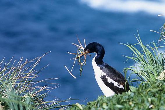 兩性共同營(yíng)巢,在海濱峭壁的巖石上或在草叢之中的地面。