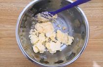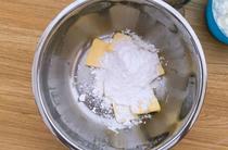 黃油加糖粉打發(fā),攪拌均勻。