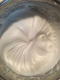 蛋白兩個(gè),打到無水無油的盆中,加入幾滴檸檬汁去腥。沒有可以加白醋,也可以不加。