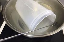 步驟二在鍋中倒入適量水,隔水加熱牛奶至溫?zé)幔煤?jiǎn)便式溫度計(jì)測(cè)量40℃,停止加熱,關(guān)火取出