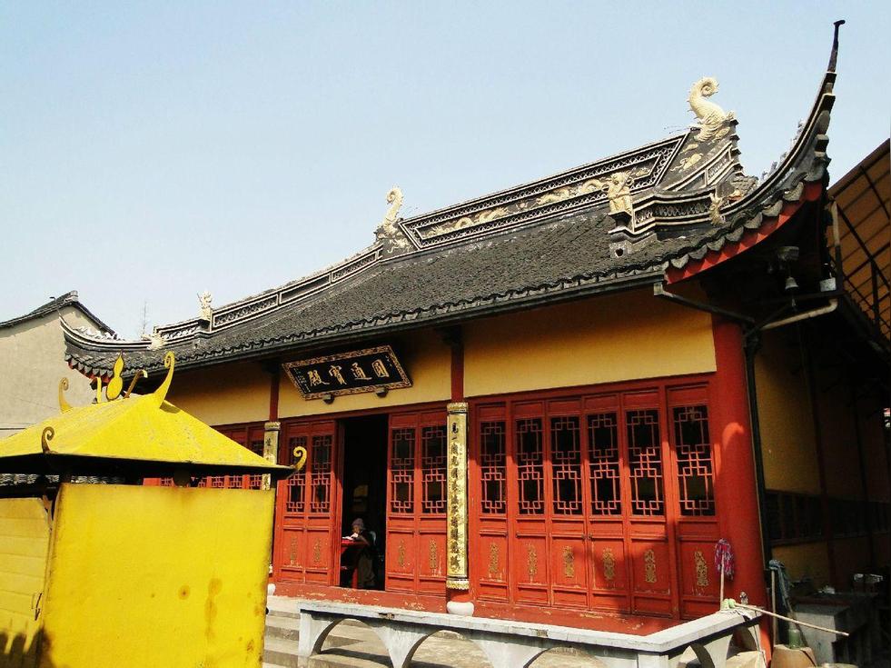 旃檀禪院原名旃檀禪林,位于金匯橋西側(cè),禪院后兩株銀杏樹(shù)分立東西兩側(cè),樹(shù)粗大茂盛,樹(shù)齡距今已有八百余年,每年秋季碩果累累,惹人喜愛(ài)。禪院內(nèi)供奉釋迦牟尼佛、觀世音菩薩、財(cái)神菩薩及十方諸大菩薩。民國(guó)二十年(一九三一年)先祖上性下定老師太重新修建旃檀禪院大雄寶殿等殿堂,入寺門(mén)處置有《江南名剎》四個(gè)大字,禪院為前后兩進(jìn)平房,前進(jìn)為八間平房,后進(jìn)為五幢樓房。每年正月初五,商號(hào)將財(cái)神抬至街上舉行接財(cái)神等活動(dòng)。解放后旃檀禪院部分寺廟房屋分給無(wú)房農(nóng)民居住,文革期間部分房屋又被集體拆除,佛像毀壞,寺院被夷為平地。