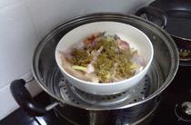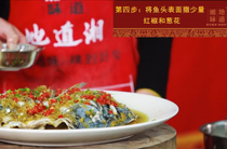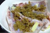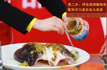 將地道湘魚頭配料均勻蓋在魚頭表面;