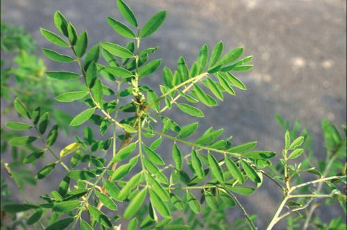 小葉2-9對,對生,卵狀長圓形、長圓形或倒卵狀長圓形,長1.7-2.3厘米,寬5-9毫米,先端常為圓形,明顯有小尖頭,基部闊楔形至圓形或截平,上面綠色,干后常呈黑色,下面灰綠色,被毛較上面的粗而長,中脈兩面均隆起,側(cè)脈4-6對,不顯著;小葉柄長約1毫米;小托葉稍長于小葉柄。