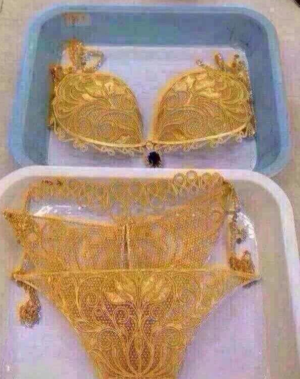 黃金內(nèi)衣,純金打造的黃金內(nèi)衣。是由曾經(jīng)為皇室打造過(guò)金器的萃華金店,動(dòng)用5名設(shè)計(jì)師、4名老工匠歷時(shí)近半年時(shí)間純手工制作而成,重量?jī)H僅只有950克。