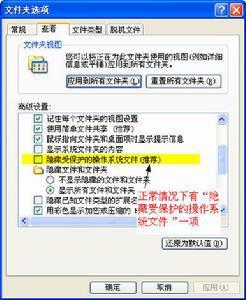 3.無法正常顯示隱藏文件,且工具-文件夾選項(xiàng)下的“隱藏受保護(hù)的操作系統(tǒng)文件”一項(xiàng)被破壞。