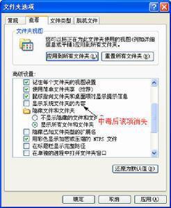 控制面板中“文件夾選項(xiàng)”的修改文件夾選項(xiàng),顯示所有文件的擴(kuò)展名,發(fā)現(xiàn)EXE/PIF/COM/SCR等類型一定要倍加小心。甭管對方如何解釋這個(gè)東東是什么,自己先看清楚,確認(rèn)是文檔才能認(rèn)為是相對安全的。