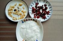 準(zhǔn)備食材:如果沒有自己做的酸奶,買的濃稠的老酸奶也可以。