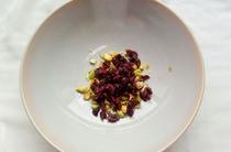 將切碎蔓越莓和芒果干放入一個(gè)大碗中