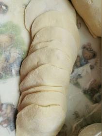 揉面排氣以后分成自己覺得合適的面劑子,搟皮(不要太薄,要不出鍋會塌,就像沒發(fā)那種)
