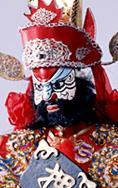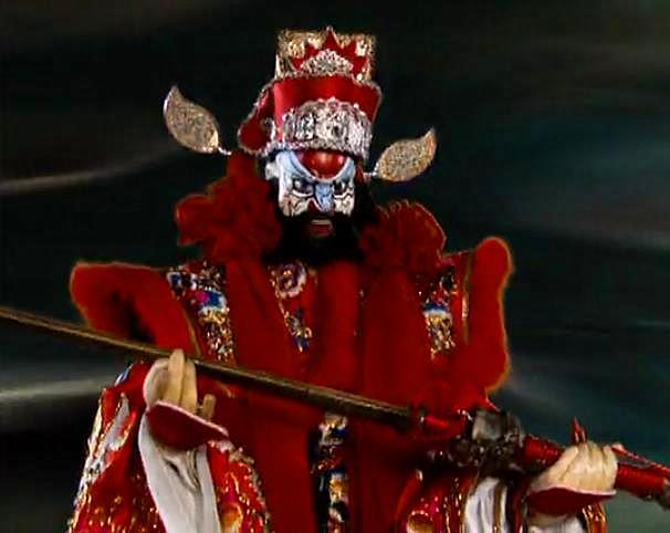 未來之宰麾下,造型類似京劇中的鐘馗,頂著一張大花臉,紅袍冠冕,虬髯豪壯,右手持拘提令牌,左手按惡業(yè)妖劍,跟前小鬼開道,聲調(diào)抑揚(yáng)頓挫,氣勢嚇人。