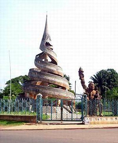 紀念塔喀麥隆統(tǒng)一紀念塔。為紀念1961年東(法語區(qū))西(英語區(qū))喀合并統(tǒng)一于1972年建成。紀念塔由喀建筑師姆旺格設(shè)計,造型為螺旋型。塔高約15米。塔身由兩道相互纏繞的階梯組成,盤旋而上,最后匯集于頂端,標志著東西喀密不可分,國家最終實現(xiàn)統(tǒng)一。塔底建有展覽廳,四周墻壁鑲嵌有富有濃郁喀麥隆風情的裝飾畫。塔前立有一座5米多高的雕塑,兒童圍繞在一位講故事的老人身邊,老人右手高擎火炬,左手攬著嬰孩。5個兒童象征著18個主要民族和當時全國的7個?。焕先舜碜鎳?,火炬象征希望和未來。整個雕塑體現(xiàn)了喀麥隆人民對祖國統(tǒng)一富強的向往,并寓意全國各民族團結(jié)和睦之精神代代相傳。