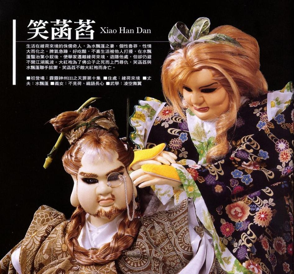金盆洗手,隱居避世的侏儒夫婦,笑菡萏身材圓胖,老是橫眉豎目,喜愛八卦計較、討厭麻煩。雖常愛指使水飄蓬,悍如河?xùn)|獅吼,但夫妻倆其實恩愛非常。