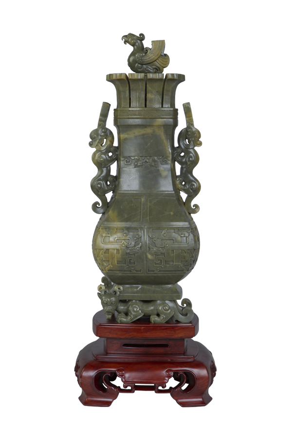 中國傳統(tǒng)文化《周易》中,記載四象,指青龍、白虎、朱雀、玄武,分別代表東、西、南、北四個方向,后來古人又將其與陰陽、五行、五色相配,故有東方青龍、西方白虎、南方朱雀、北方玄武之說。周易學者認為在中國的文化看來,磐龍玉被發(fā)現(xiàn)并不是偶然,當代玉文明中著名的和田羊脂白玉出現(xiàn)于我國西部,著名的南紅則出現(xiàn)于我國南方,中國傳統(tǒng)文化方位中北方為玄武,玄即黑色為代表,磐龍墨玉即為黑色玉;東方為青龍,即青色為代表,磐龍玉即為青色玉。玉為地之精華的寶石,孕育經(jīng)過了億萬年,終成至寶,所以在中國東北發(fā)現(xiàn)兩種顏色的玉,即為歷史的必然。