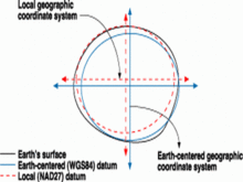 在過去的 15 年中,衛(wèi)星數(shù)據(jù)為測地學家提供了新的測量結(jié)果,用于定義與地球最吻合的、坐標與地球質(zhì)心相關聯(lián)的旋轉(zhuǎn)橢球體。地球中心(或地心)基準面使用地球的質(zhì)心作為原點。最新開發(fā)的并且使用最廣泛的基準是 WGS 1984。它被用作在世界范圍內(nèi)進行定位測量的框架。