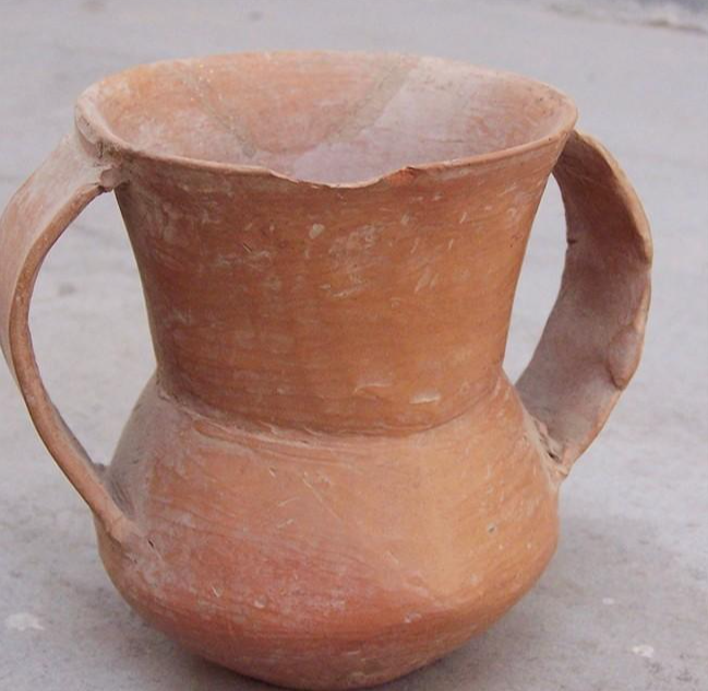 陶器是用水和粘土制作經(jīng)火燒而成器具。陶質(zhì)以夾砂為主,紋飾有劃紋、指甲紋、繩紋、鋸齒紋、網(wǎng)格紋、渦紋、弧線紋等。絕大多數(shù)為手制,個別器物也有輪制。主要是一些鼎、罐、杯、碗、瓶等,黑陶僅發(fā)現(xiàn)三足。彩陶片多以黑色條紋見長,多碎片,完整實物較少,可見當時彩陶鼎盛時間已過。