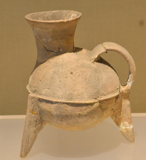 令人稱道的工藝這件陶鬶的工藝水平也值得后人稱道。它雖是紅色胎體,但成型后經(jīng)過磨光工藝,對外表進行二次加工,使器身光潤亮澤而呈灰黃色,從而避免了在不施彩的情況下外觀的粗糙,幾顆零星分布的乳釘紋和凸弦紋使整個器物更富有生氣。乳釘紋是指器物表面附著的乳狀突起,這類在陶器成型后又附加于器表的裝飾通稱為附加堆紋。弦紋就是線紋,根據(jù)形態(tài)的不同,分為凸弦紋和凹弦紋。龍山文化