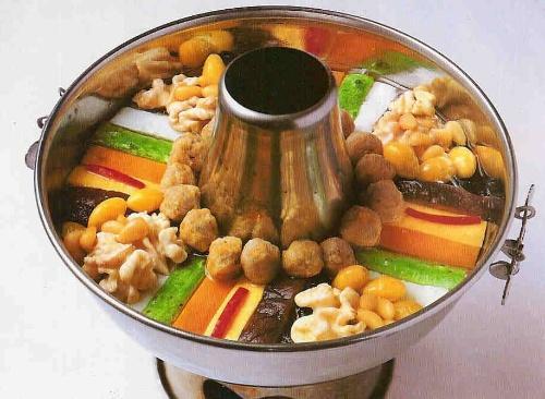 這也是韓定食里少不了的部分。韓定食沿襲了朝鮮時(shí)代宮廷菜的傳統(tǒng)風(fēng)味,各式小菜擺滿桌面,一般比較清淡,很少油膩,也不太辣。結(jié)合了蒸、烤、燙、拌等各種烹調(diào)方法,材料、配色、調(diào)味花樣繁多。由于“韓定食”制作和材料準(zhǔn)備都較為復(fù)雜,只能在專門(mén)的餐館吃到,且至少兩人起就餐。此類餐廳大多設(shè)計(jì)成韓國(guó)傳統(tǒng)房屋的樣式,陳設(shè)著韓國(guó)傳統(tǒng)家具,裝修很有特色。通常,韓定食的價(jià)格較為昂貴,但現(xiàn)在也有簡(jiǎn)易式的,從十幾種到幾