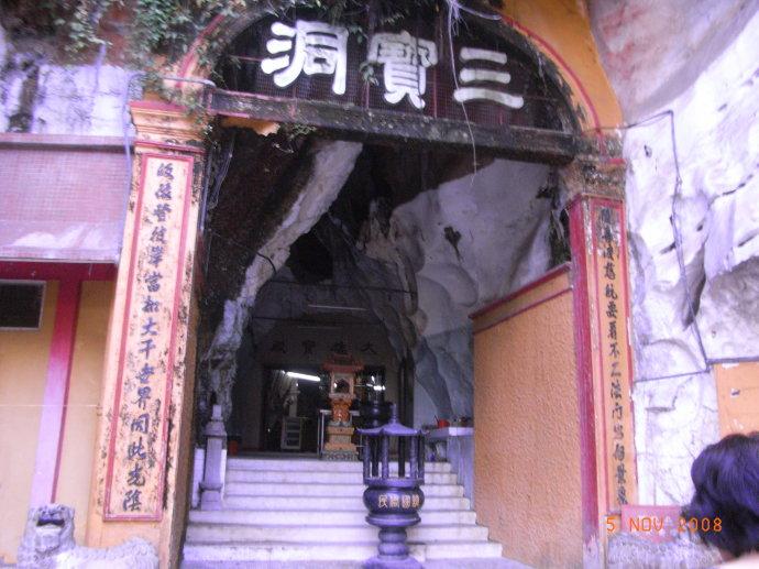 三寶洞(SanPohTong)系為紀(jì)念中國明朝三保太監(jiān)鄭和而建,位于怡保市南郊。據(jù)說在19世紀(jì)末,有一位僧人發(fā)現(xiàn)此洞,遂決定在此閉關(guān)修行。他一直在此洞居住了二十余年,直至逝世,后又有其他僧人修行于此?,F(xiàn)此處已建成一座宏偉的佛寺。寺院依山而建,洞前有亭臺樓閣,小橋流水;洞中鐘乳石和石筍之間,佛像星羅棋布;崖上壁畫生動傳神,另有蜿蜒棧道通往“小西天”山谷,可謂別有洞天。