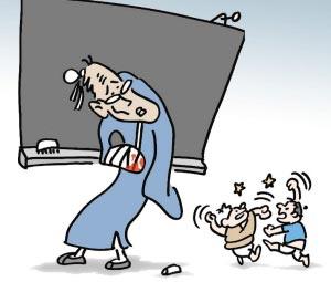 而社會對教師多要求盡責(zé),少強(qiáng)調(diào)尊師;多要求奉獻(xiàn),少強(qiáng)調(diào)權(quán)益。一些老師抱怨說,出了點(diǎn)事,一般不敢追究學(xué)生的責(zé)任,學(xué)校領(lǐng)導(dǎo)只挑教師的問題,老師只能忍氣吞聲。