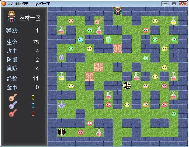 使用RPG maker xp樣板制作的魔塔游戲中紅寶石增加攻擊,藍寶石增加防御,綠寶石增加魔防,黃寶石增加等級。