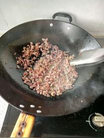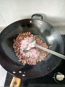 步驟四臘肉放鍋里炒出油來