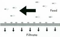 切向流是指液體流動(dòng)方向與過(guò)濾方向呈垂直方向的過(guò)濾形式。傳統(tǒng)的液體死端過(guò)濾(dead end),也叫垂直過(guò)濾,是大部分微孔過(guò)濾(MF,微濾),包括除菌過(guò)濾所采用的過(guò)濾形式,其液體的流動(dòng)方向與過(guò)濾方向一致,隨著過(guò)濾的進(jìn)行,過(guò)濾膜表面形成的濾餅層或凝膠層厚度逐漸增大,流速逐漸降低。當(dāng)過(guò)濾介質(zhì)為孔徑細(xì)小的超濾膜或微濾膜時(shí)料液中固形物含量很高時(shí),采取死端過(guò)濾方式,流速將急速降低,因此死端過(guò)濾只能處理小體積的料液。