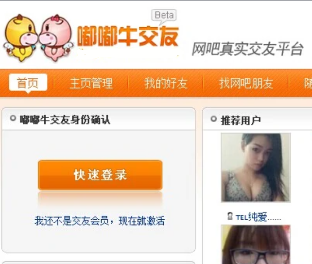 嘟嘟牛交友之前一直致力于網(wǎng)吧交友平臺,通過改版之后準(zhǔn)備將方向致力于網(wǎng)絡(luò)交友平臺。目前,嘟嘟牛交友上有40000多個真實(shí)的網(wǎng)吧用戶,該用戶都是經(jīng)過身份認(rèn)證的。用戶可以在線發(fā)信息,短信等方式聯(lián)系交友對象,同時(shí)也可以利用搜索的方式進(jìn)行搜索。另外,在今后的發(fā)展方向上,嘟嘟牛交友也會引入視頻主播,視頻交友等方式,滿足用戶的交友需求。