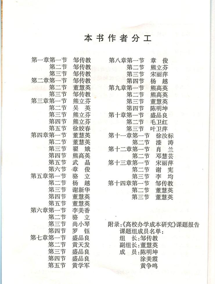 本書(shū)由江西財(cái)經(jīng)大學(xué)鄒傳教負(fù)責(zé)策劃,組織集體編寫(xiě)。具體承擔(dān)寫(xiě)作任務(wù)的有:鄒傳教、董慧英、熊立芬、盛品良、熊高英、章俊、駱立、楊越、宋麗萍、吳英、徐姣春、翟娥、武晶、謝新華、李美香、尚小琴、羅玨、黃天發(fā)、黃學(xué)軍、陳明坤、毛衛(wèi)紅、葉衛(wèi)萍、徐汝標(biāo)、漆濤、肖蘭、鄧慧蕓、謝憲、李均等同志。附錄《高校辦學(xué)成本研究》課題報(bào)告由課題組(組長(zhǎng):鄒傳教,副組長(zhǎng):董慧英,成員:陳明坤、涂美霞、黃爭(zhēng)鳴)完成。全書(shū)由鄒傳教、董慧英修改定稿。