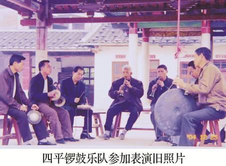 四平鑼鼓俗稱粗鑼鼓,是福建省閩南山區(qū)地方傳統(tǒng)音樂文化的遺存。起源于古代的四平戲,是早期的南戲弋陽諸腔之一。元末明初,四平戲從山西傳入福建,并演變成新的地方劇種,清朝時期,四平戲和四平鑼鼓在南靖已十分盛行。南靖地方民間有“萬盛鑼,誘船婆;萬盛鼓,誘查某”等俗諺,南靖有“四平吹,熱煞囝仔胚”的說法。四平鑼鼓隊參加會慶、節(jié)慶、賽事等活動都按四平戲曲調(diào)創(chuàng)作大型吹打樂曲,節(jié)奏感強,氣氛熱鬧,深受農(nóng)民喜愛。