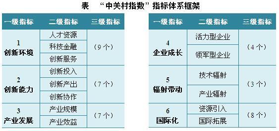“中關(guān)村指數(shù)”借鑒了美國硅谷指數(shù)的編制思想和方法,結(jié)合中關(guān)村的實際,形成獨特、開放式的指標(biāo)體系,包括創(chuàng)新創(chuàng)業(yè)企業(yè)、產(chǎn)業(yè)發(fā)展、創(chuàng)新能力、創(chuàng)新創(chuàng)業(yè)環(huán)境、國際化、中關(guān)村300強(qiáng)和上市公司100強(qiáng)等6個一級指標(biāo),涵蓋20個二級指標(biāo)以及122個三級指標(biāo)。[1]