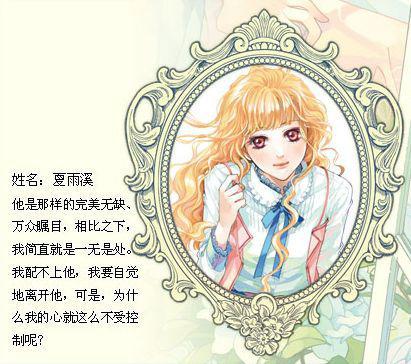 人物介紹嫉惡如仇的夏雨溪有著天使的外貌卻沒男生敢靠近。一次意外將救過她一次的膽小鬼巖晴綁在了一起,并獲得的一把“魔鏡”。然而讓她苦惱的是好朋友林詩琪和她同時(shí)喜歡上了安沐澤。得到安沐澤的意外告白后才發(fā)現(xiàn)“告白”只是一個(gè)騙局。